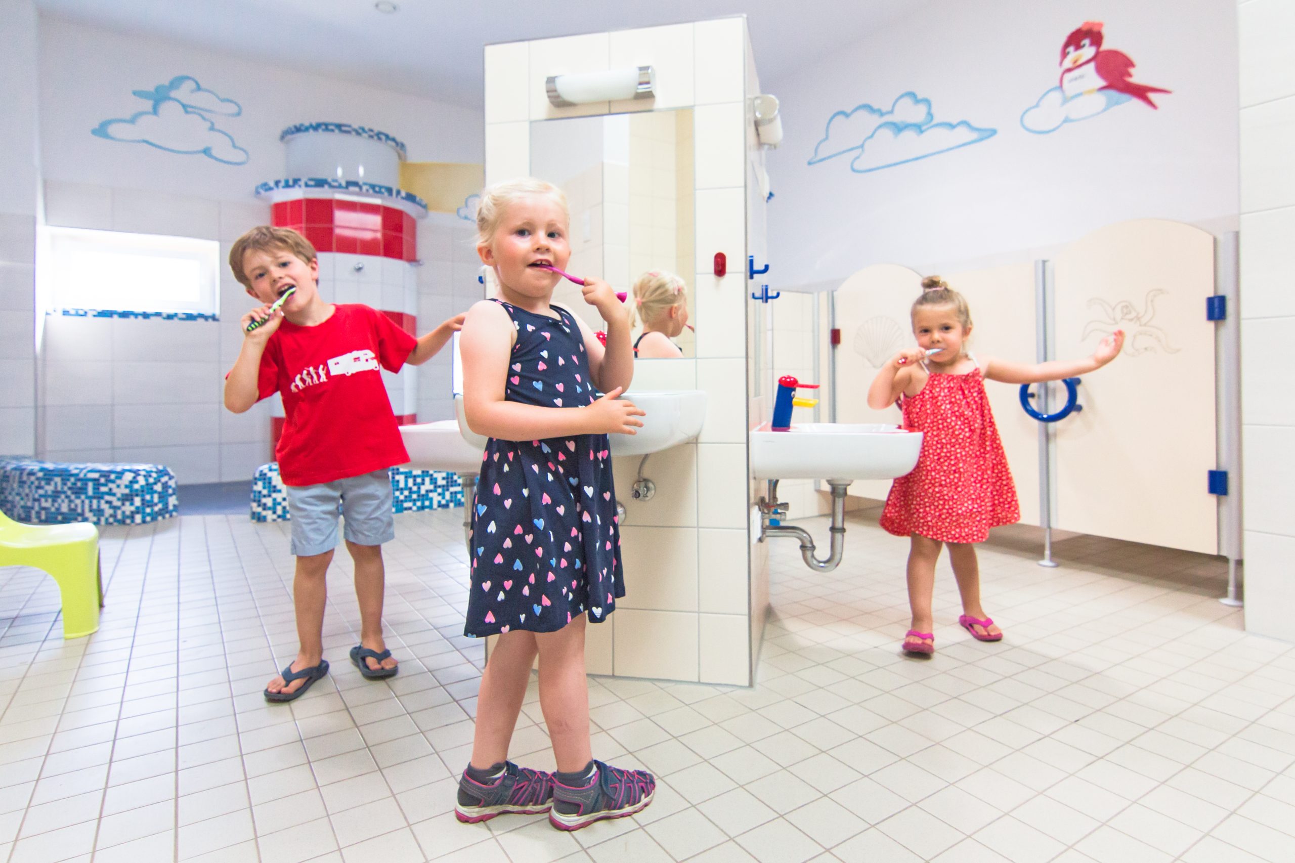 Unser modernes Sanitärgebäude liegt zentral, eben unsere Kochplatten, Spülen sowie Waschmaschinen/Trockner.